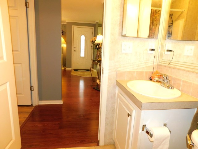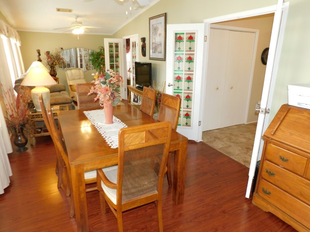 FLOORING: Vinyl in kitchen, laundry room, and each bathroom; laminate in living room, veranda, and each bedroom; carpet in Florida room