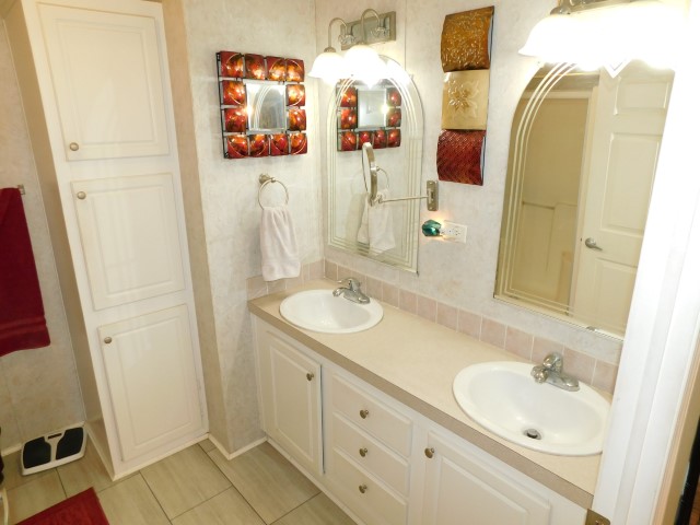 BATHROOMS: Master has walk in shower, XL double vanity, and tall linen cabinet; guest bath has combination tub/shower, single vanity, medicine cabinet, and wall cabinet