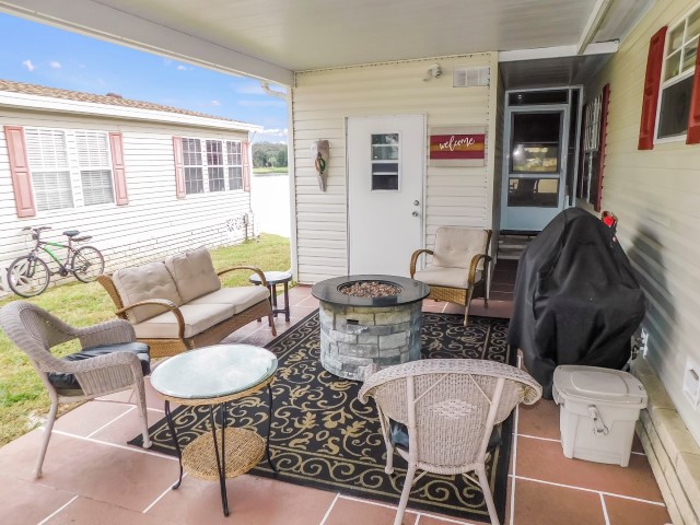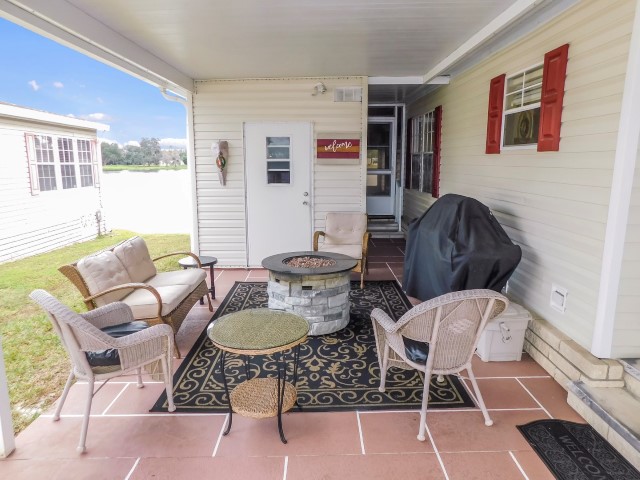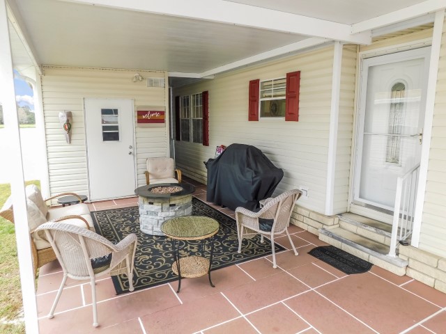 CARPORT/COVERED PATIO: Patio furniture, grill