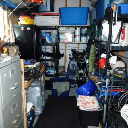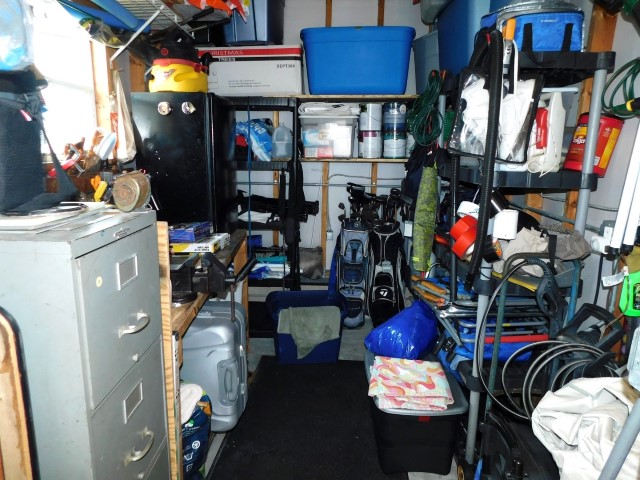 STORAGE SHED: Work bench, shelving