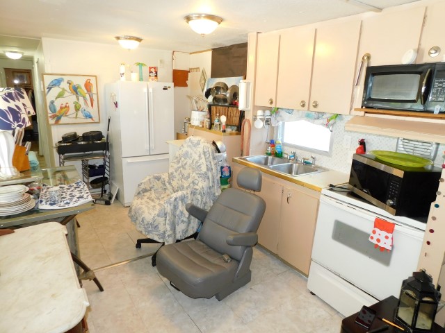 KITCHEN: Maytag refrigerator, Whirlpool range, GE microwave