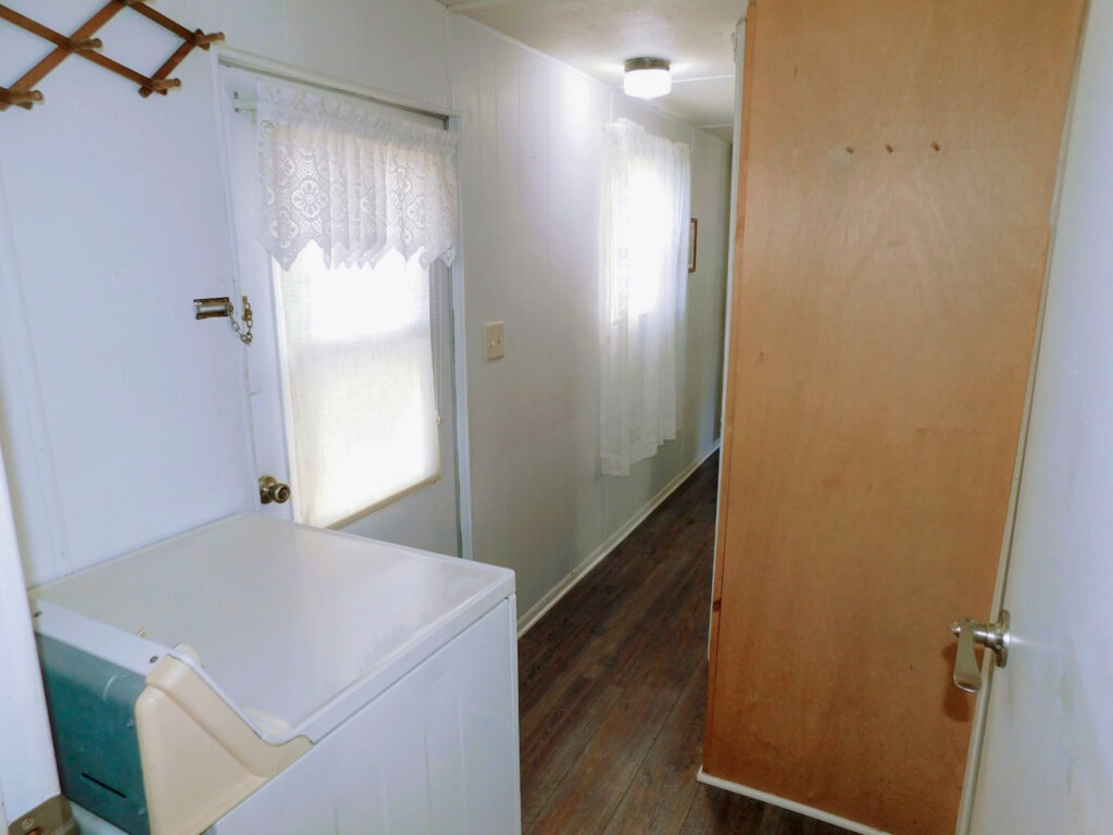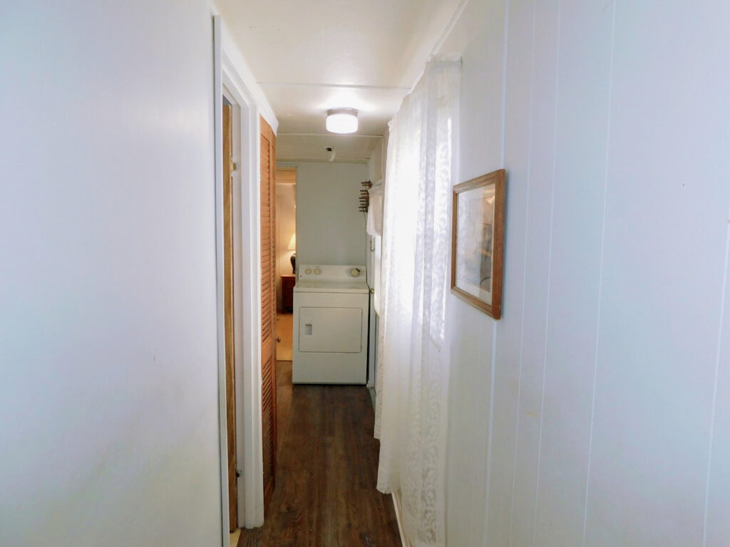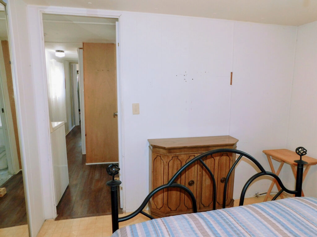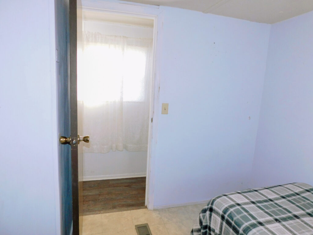 FLOORING: Vinyl in kitchen, bathroom, and each bedroom; newer laminate in living room and hallway