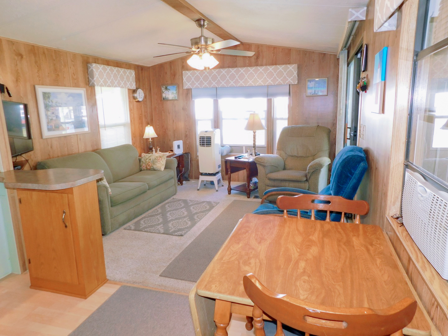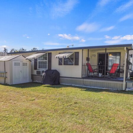 You could soon be living the easy life as the new owner of this exceptionally well maintained and smartly expanded 1987 Park Model home. Priced right at $29,900, and measuring 12×34, plus the additions of the guest bedroom, home office, and laundry/storage room, this home will provide an approximate total of 580 square feet of interior living space, with two bedrooms and one bathroom. It is in excellent condition, immediately available, and will be sold fully furnished, so moving day will be quick and easy! Outside, you’ll have a covered front porch for rest and relaxation as well as a nice sized storage shed for all your extra things. Your new home is located in a quiet location on a no-outlet street in Happy Days RV Resort of Zephyrhills, a very well-managed, active, and friendly 55+ adult community close to all the best of Central Florida. The low monthly lot rent is $410, to be paid in one annual payment at closing. Lot rent includes water, sewer, trash removal, and lawn mowing. This uniquely appointed home, with two bedrooms, home office, and inside laundry is a rare find! Call today and let us help you make it yours! CLICK HERE to take a virtual tour today!