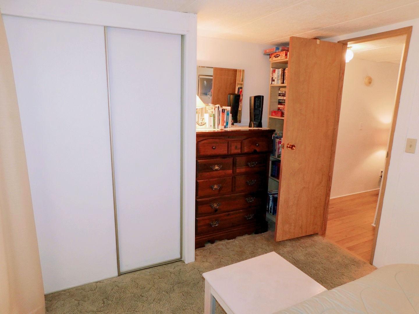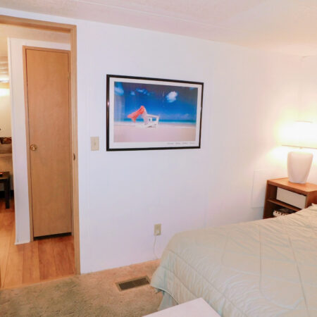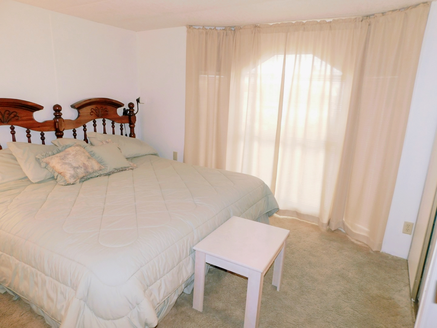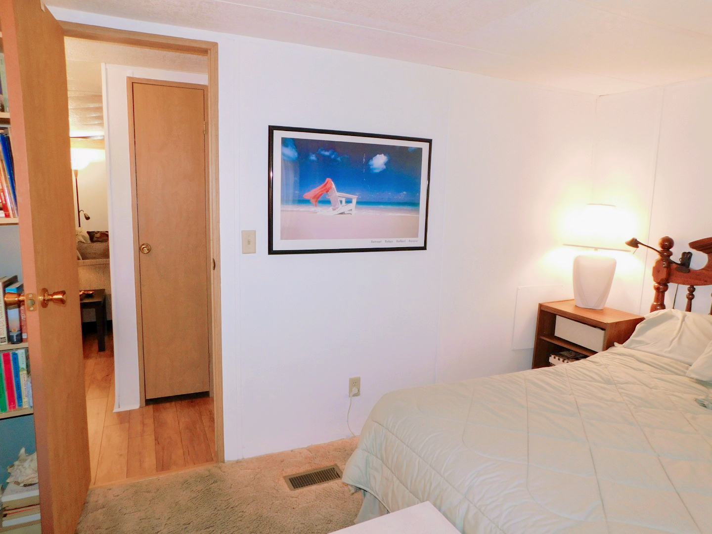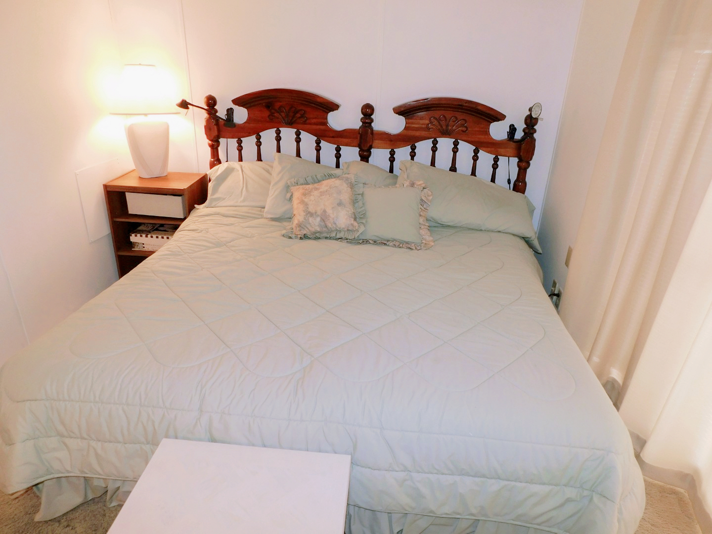 GUEST BEDROOM: King bed, chest of drawers, nightstand, two table lamps