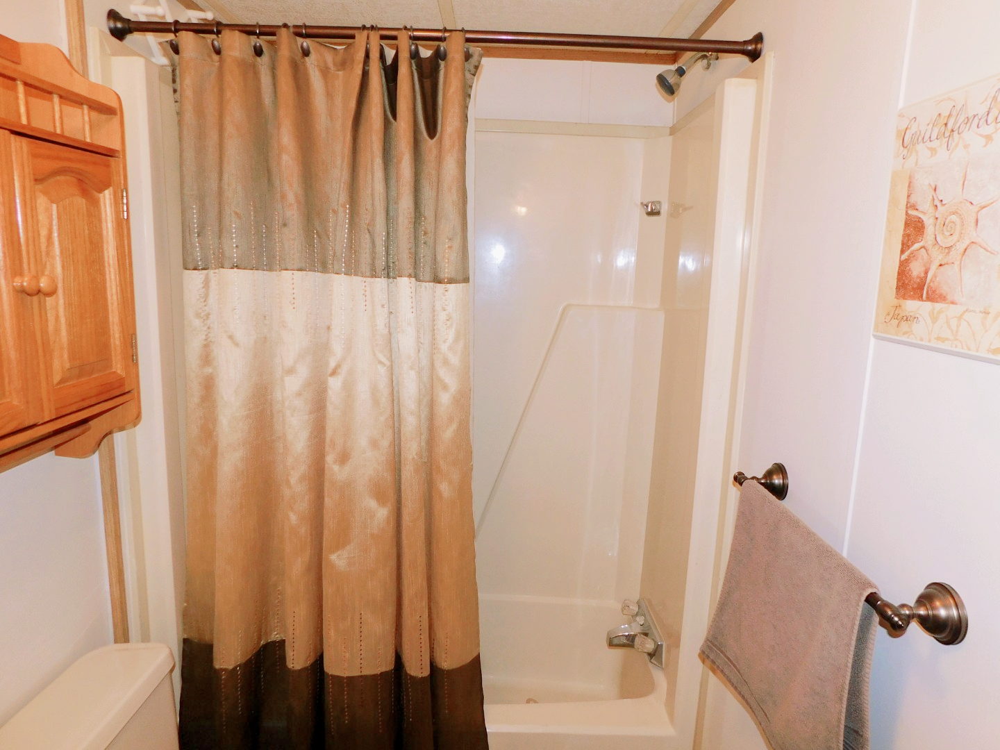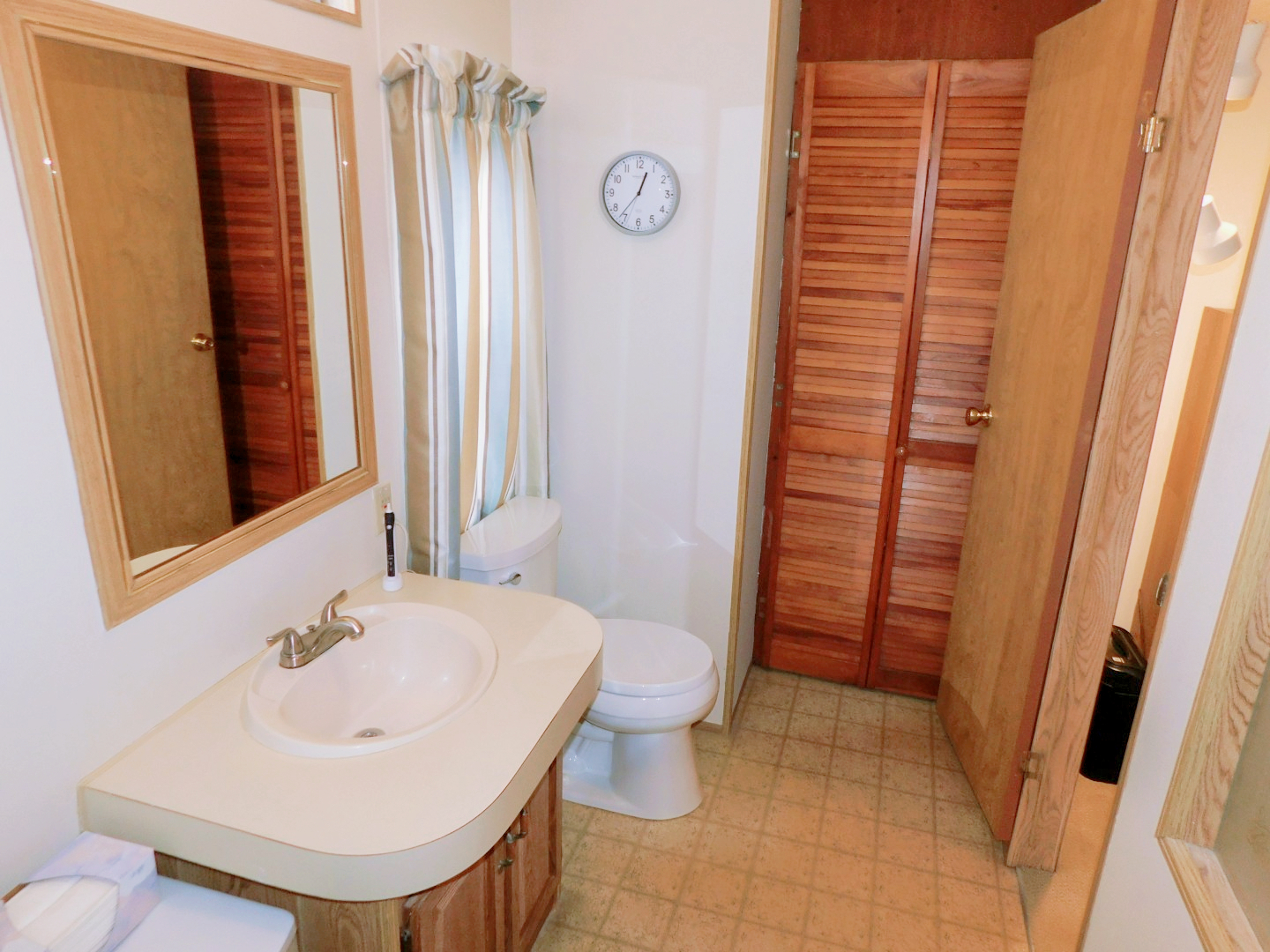 BATHROOMS: Master has walk-in shower, single vanity, medicine cabinet, and linen closet; guest bathroom has combination tub/shower, single vanity, and medicine cabinet