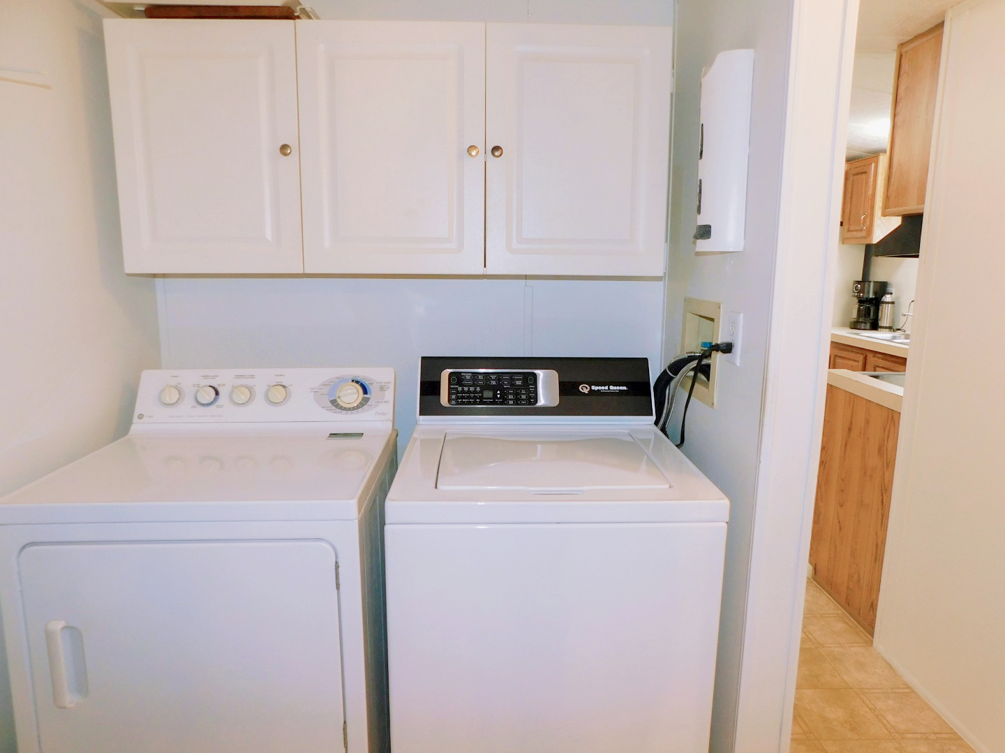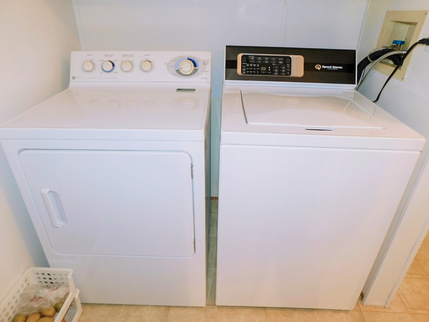 LAUNDRY ROOM: Newer (2023) Speed Queen washer, GE dryer