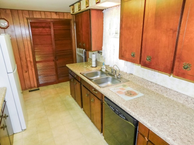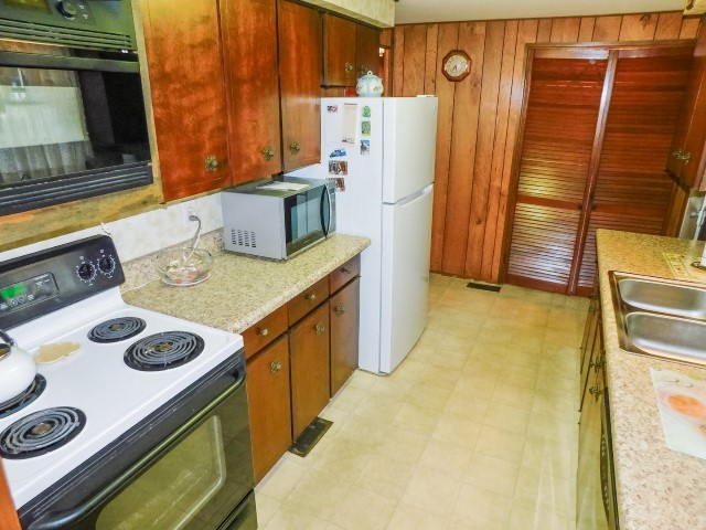 KITCHEN: Frigidaire refrigerator, Maytag dishwasher, GE range and built-in microwave, Emerson countertop microwave