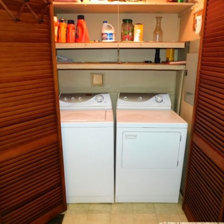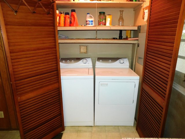 LAUNDRY ROOM: Maytag washer and dryer, shelving
