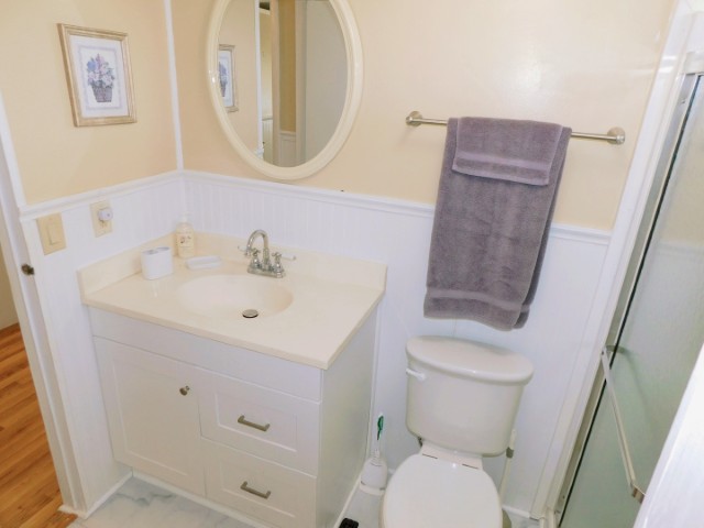 BATHROOMS: Master has walk-in shower, single vanity, and linen closet; guest bath has walk-in shower and single vanity