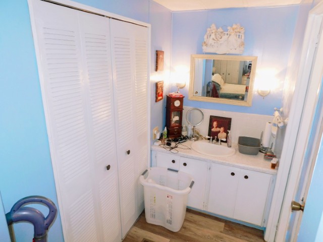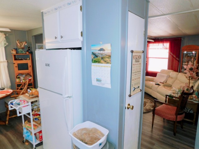 FLOORING: Vinyl in kitchen and guest bathroom; laminate in dining room, living room, and each bedroom