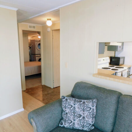 INTERIOR LAYOUT: Open and bright kitchen, 6×9 dining room, 11×17 living room, 11×15 master bedroom, 9×11 guest bedroom, laundry room off of guest bedroom