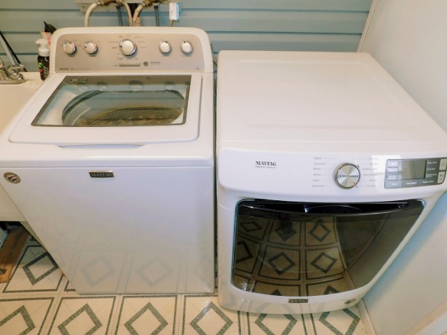 LAUNDRY ROOM: Maytag washer and dryer, laundry sink