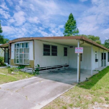 This 1972 Single Wide measures approximately 12×46, and with the additions, offers an approximate total of 1000+ square feet of living space. It must be totally cleaned out so that you may start remodeling it into your very own slice of Florida paradise. This home is offered at the fantastic price of $5,000 because it is in need of A TOTAL REHAB and is NOT move-in ready. The true value of this home is in its unlimited potential. Unit will be sold AS-IS; seller and broker have no knowledge about the condition of the home and the working order of its components. Utilities are off until the new owner restarts service. Buyer MUST be present to purchase this home. All offers will be considered!