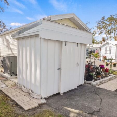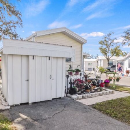 You’ll soon be living your best years as the new owner of this smartly expanded and exceptionally well maintained 1989 Park Model home. Priced right at $65,900 and measuring 12×42, plus the 10×27 Florida room addition, this home will provide approximately 770 square feet of interior living space, with one bedroom and one bathroom. It is in excellent condition and will be sold fully and generously furnished, so moving day will be quick and easy. Outside, the raised front deck and the open back patio will be ideal places for rest and relaxation. Your new home is located on an XL corner lot conveniently close to the community entrance, clubhouse, pool, and mail center in Horseshoe Cove RV Resort of Bradenton, a very active, fun, and welcoming 55+ community near all the best of Central Florida. The monthly lot rent of $933 includes lawn care and trash removal. This could be the one you’ve been waiting for, so call today and let us help you make it yours! CLICK HERE to take a virtual tour today!