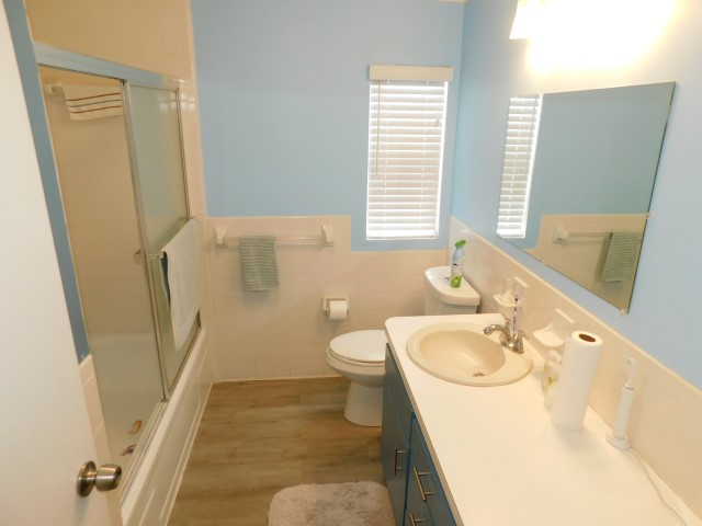 FLOORING: Laminate in kitchen, breakfast nook, dining room, living room, guest bathroom, and each bedroom; vinyl in master bathroom