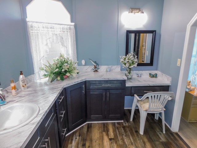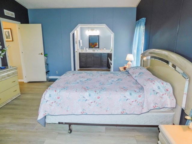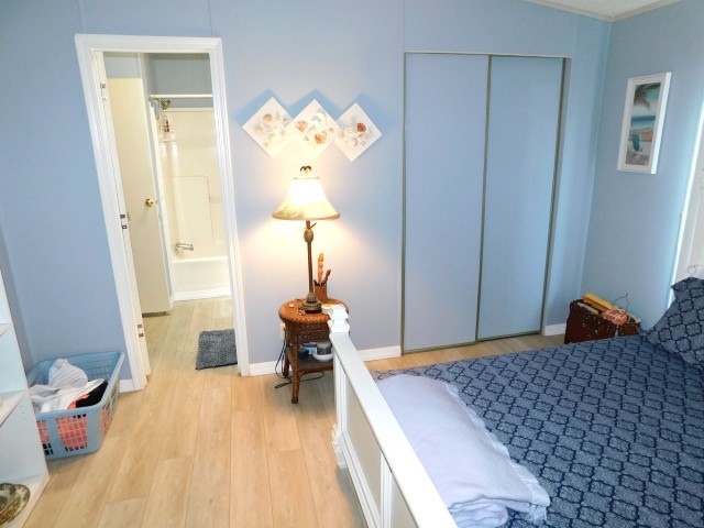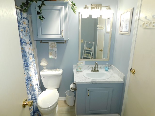 UPDATED BATHROOMS: Walk-in shower, single vanity, tall linen cabinet, make-up station, lots of storage and counter top space; guest bath has combination tub/shower, single vanity, wall cabinet, and door to guest bedroom