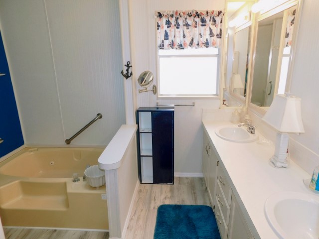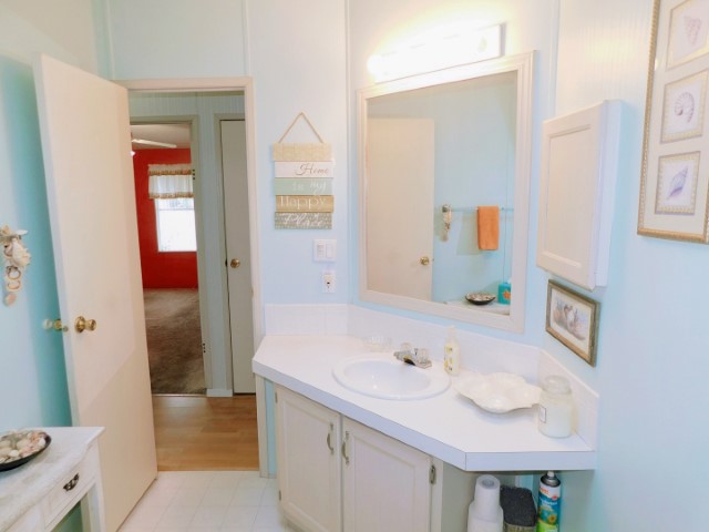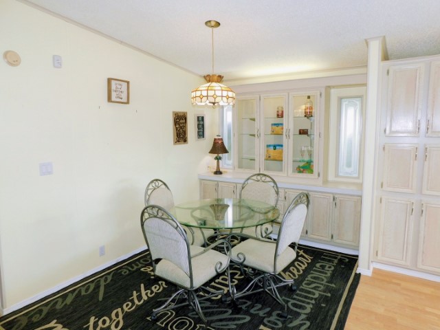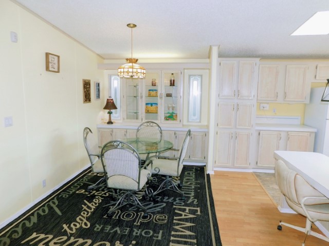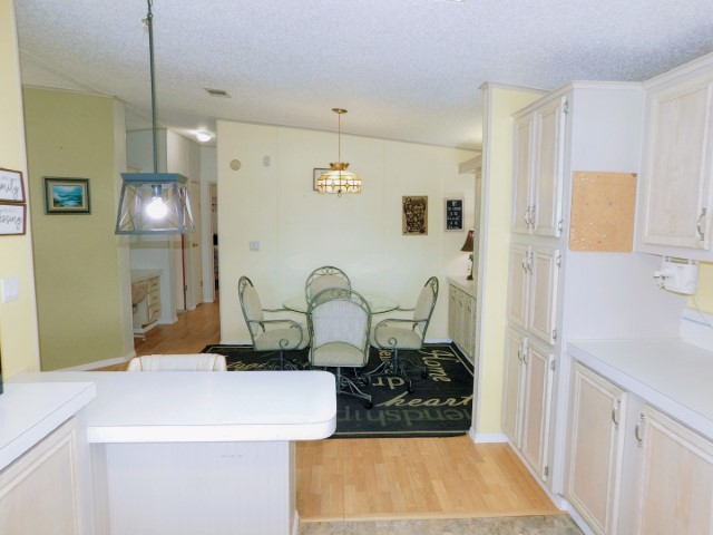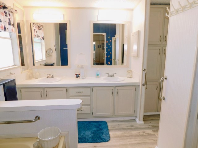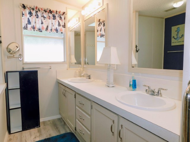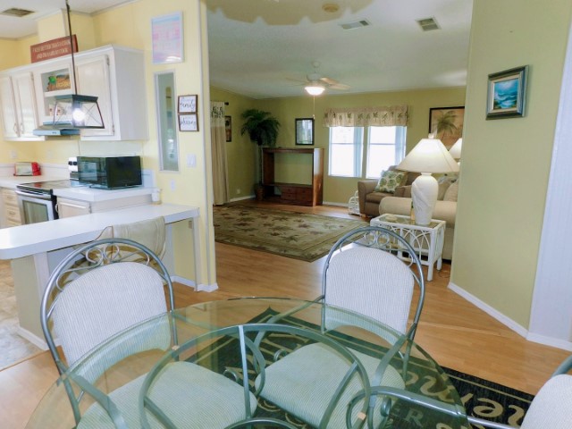 FLOORING: Vinyl in kitchen and guest bathroom; laminate in dining room, living room, laundry room, and master bathroom; carpet in Florida room and guest bedroom