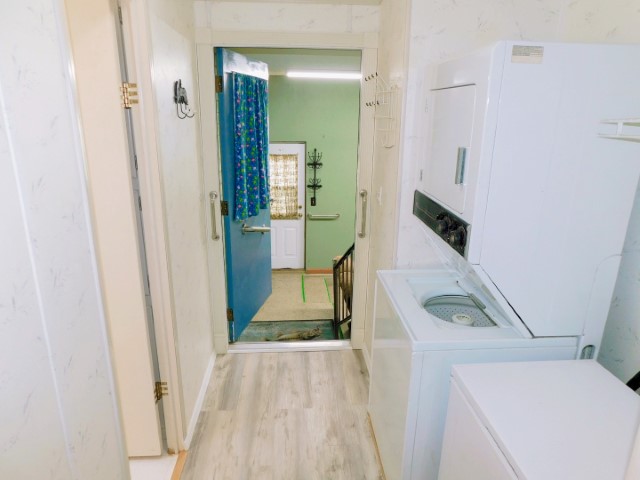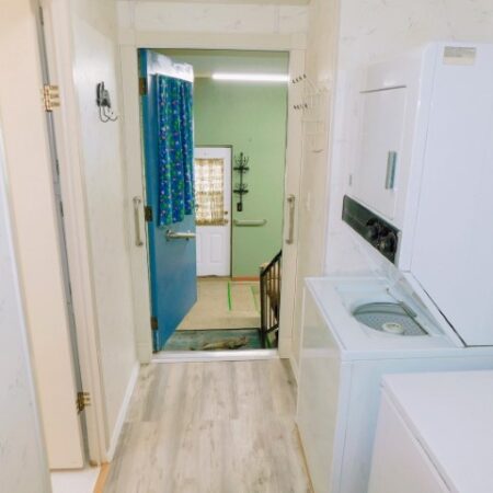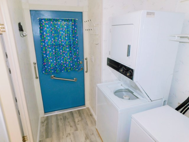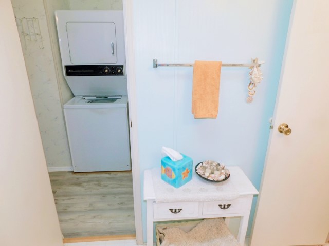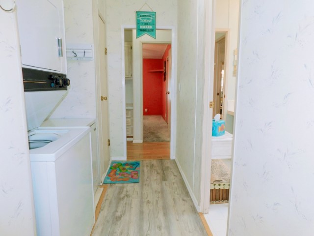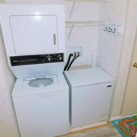 LAUNDRY ROOM: Stacked Maytag washer and dryer, Magic Chef freezer