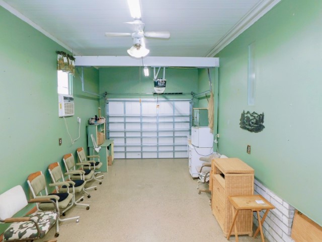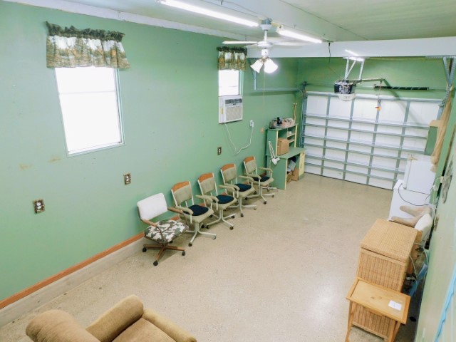 ATTACHED GARAGE: Lighted ceiling fan