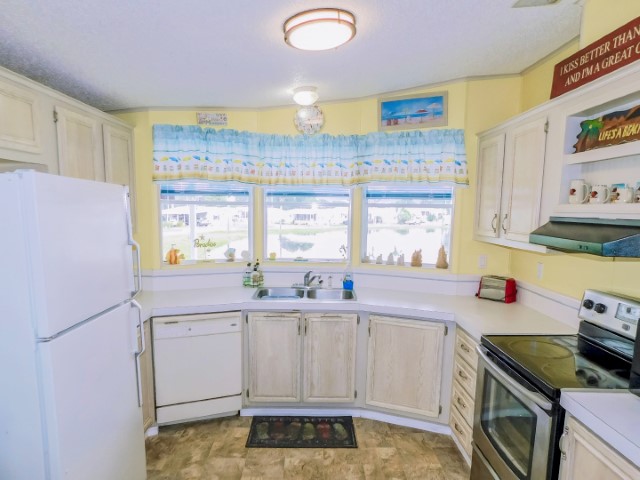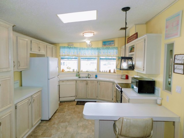KITCHEN: Hot Point refrigerator, Maytag range, Whirlpool dishwasher, Magic Chef microwave