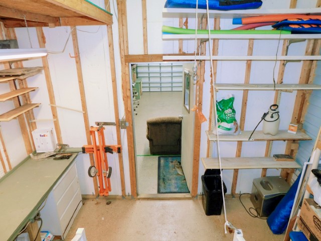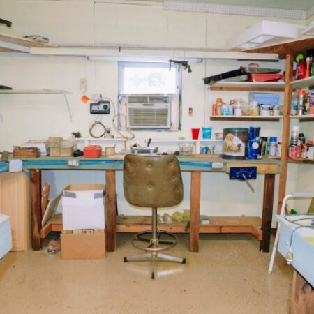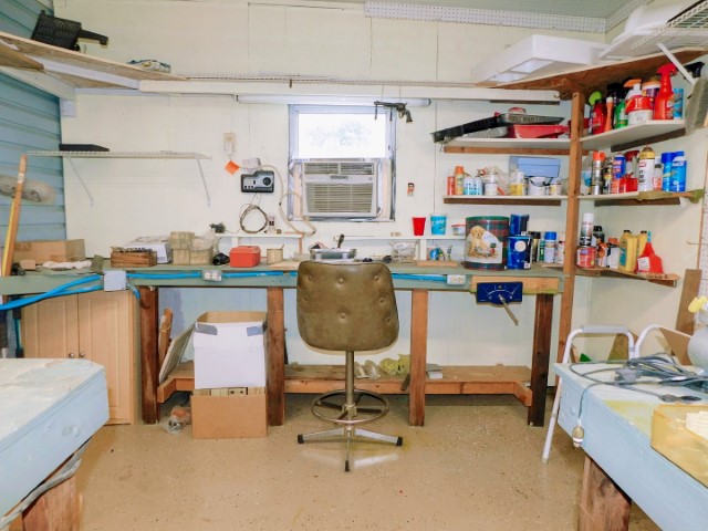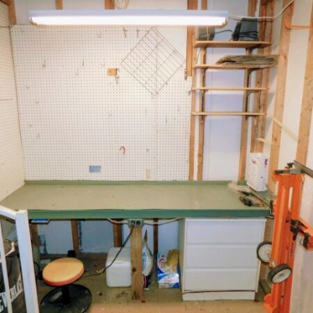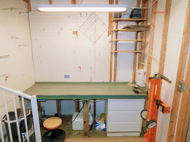 WORKSHOP: Work bench, shelving